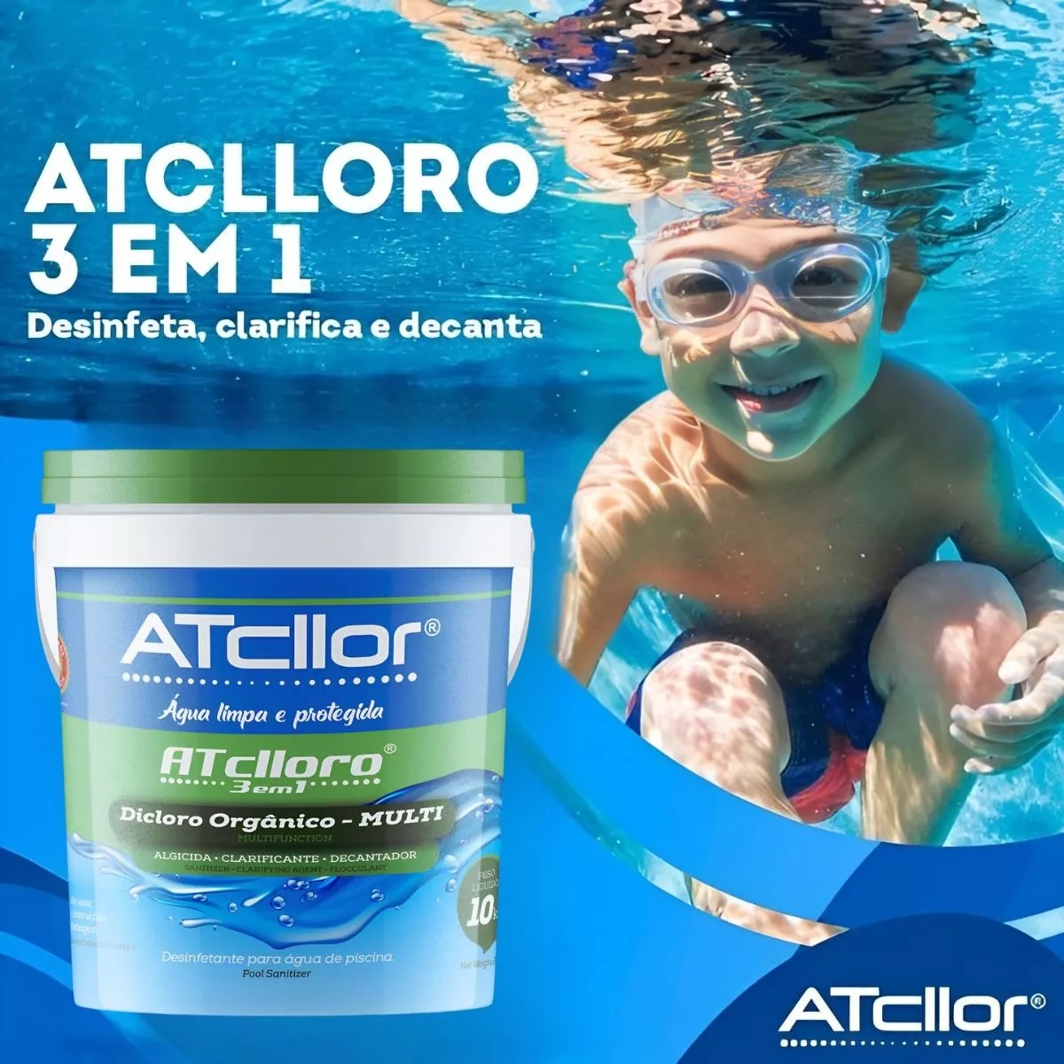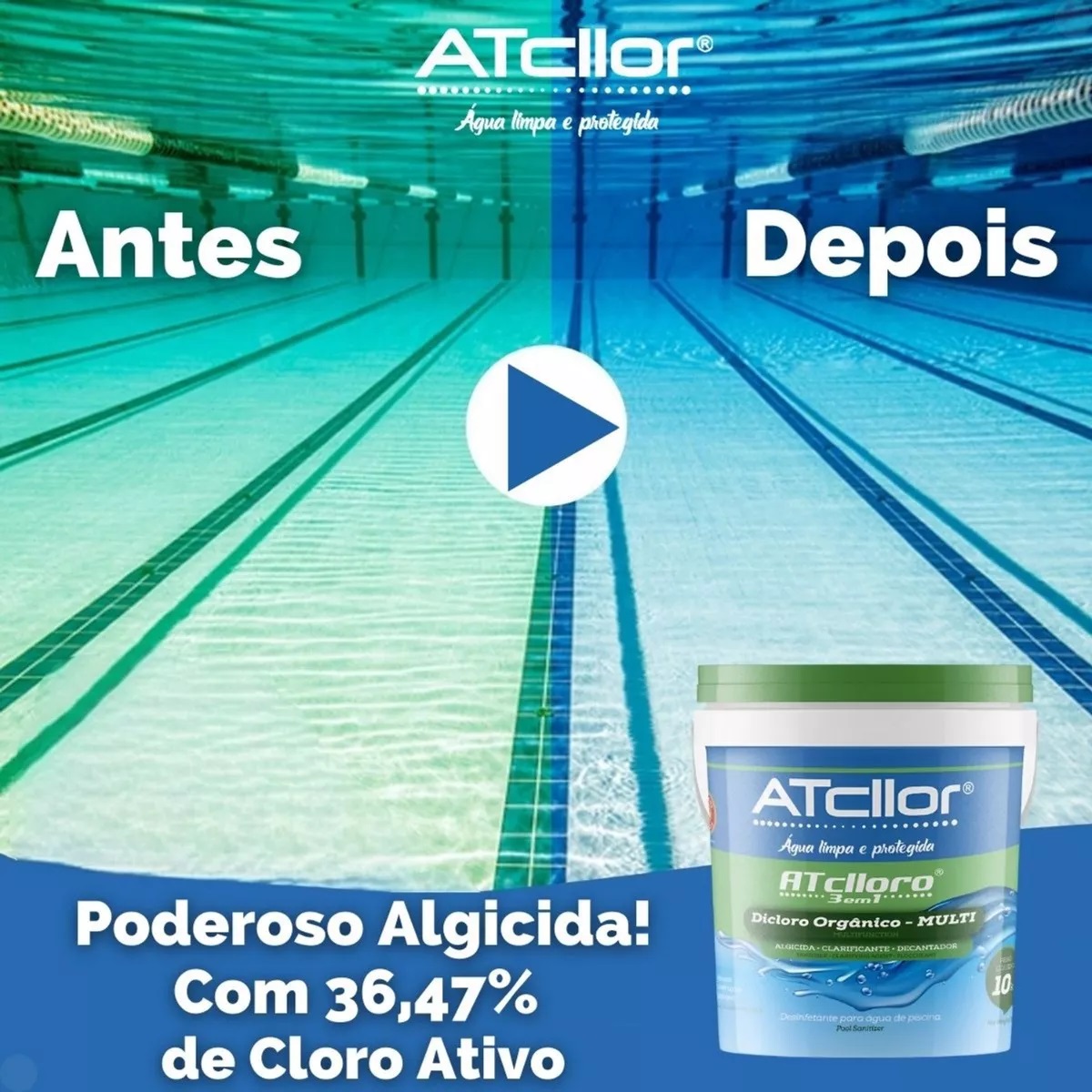 – Adquira o ATclloro 3 em 1 e tenha a tranquilidade de ter sua piscina com a água limpa e protegida.